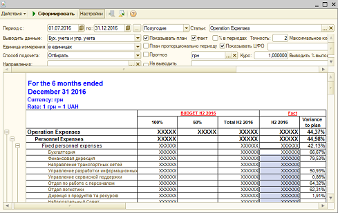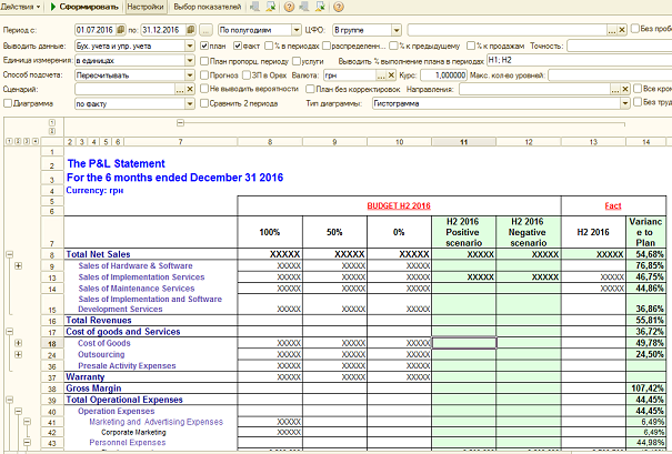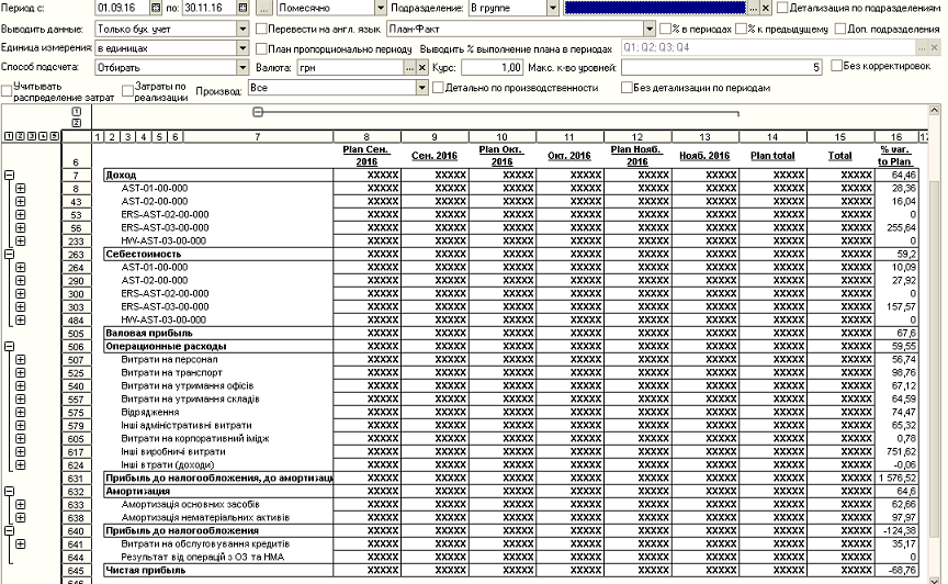 На основании документов регламентного учета созданы движения по учету P&L. Создана множество аналитических отчетов для план-фактного анализа.